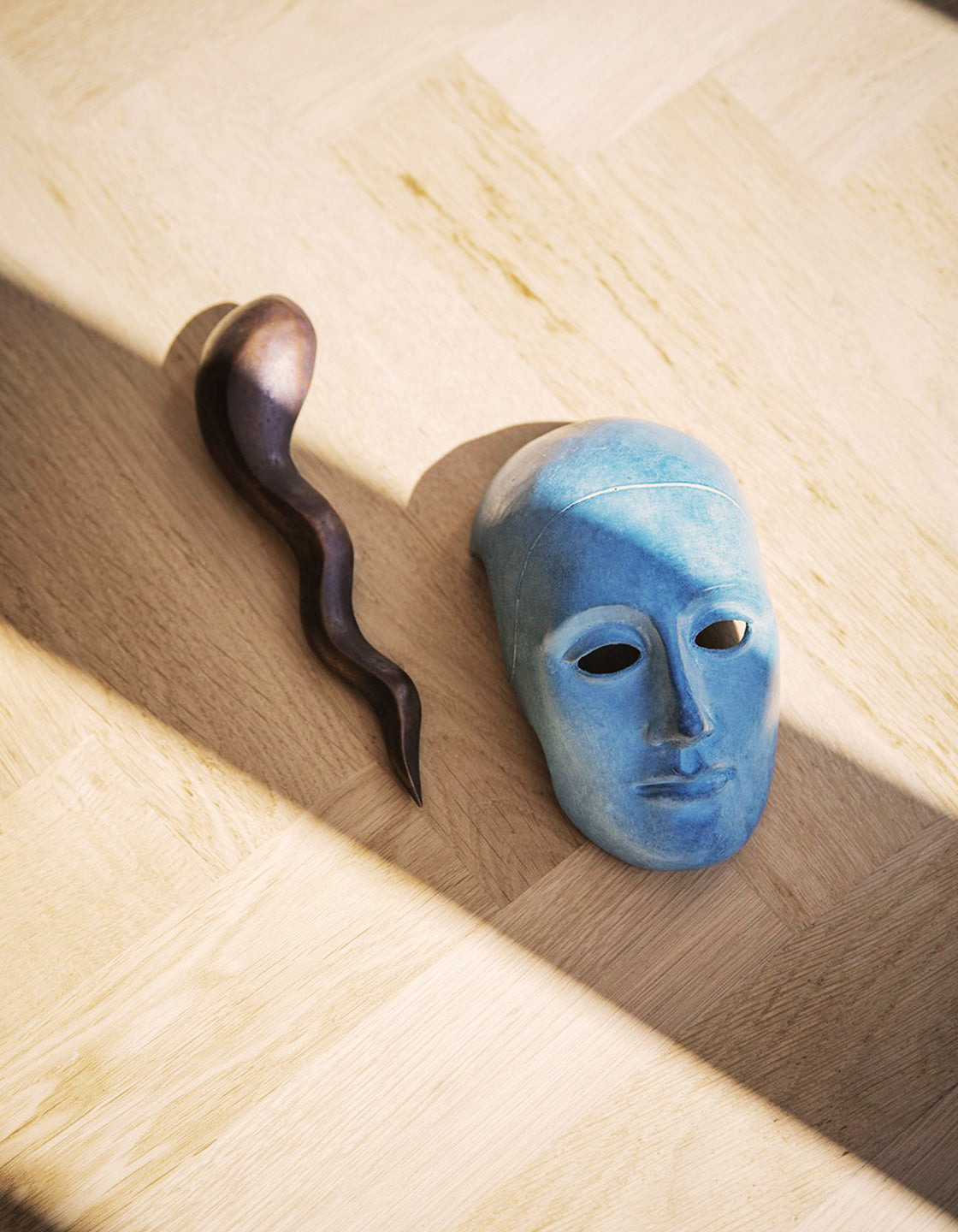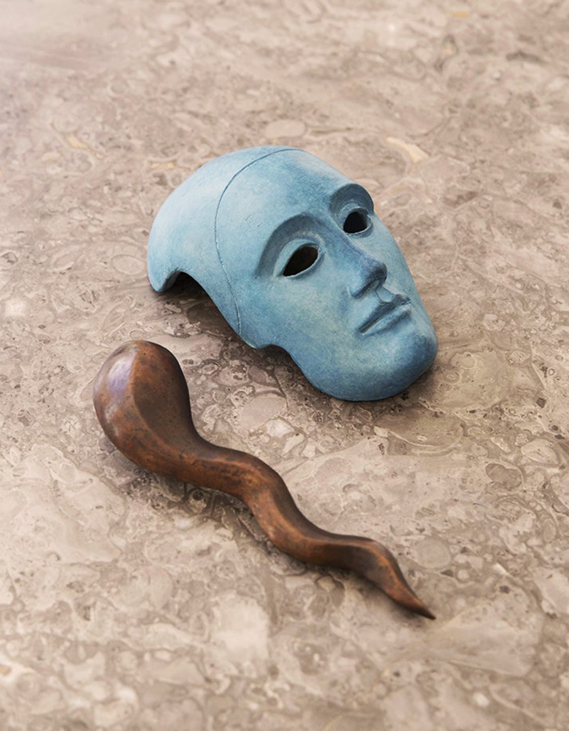This dual-piece patinated bronze sculpture invites a dialogue between the shadowy, subcultural, and suppressed sides of humanity and our society. The seen and the unseen, the rational and the suppressed. Itona invites her viewer to be a part of this conversation. What does the combination of classical and modern mean to them?